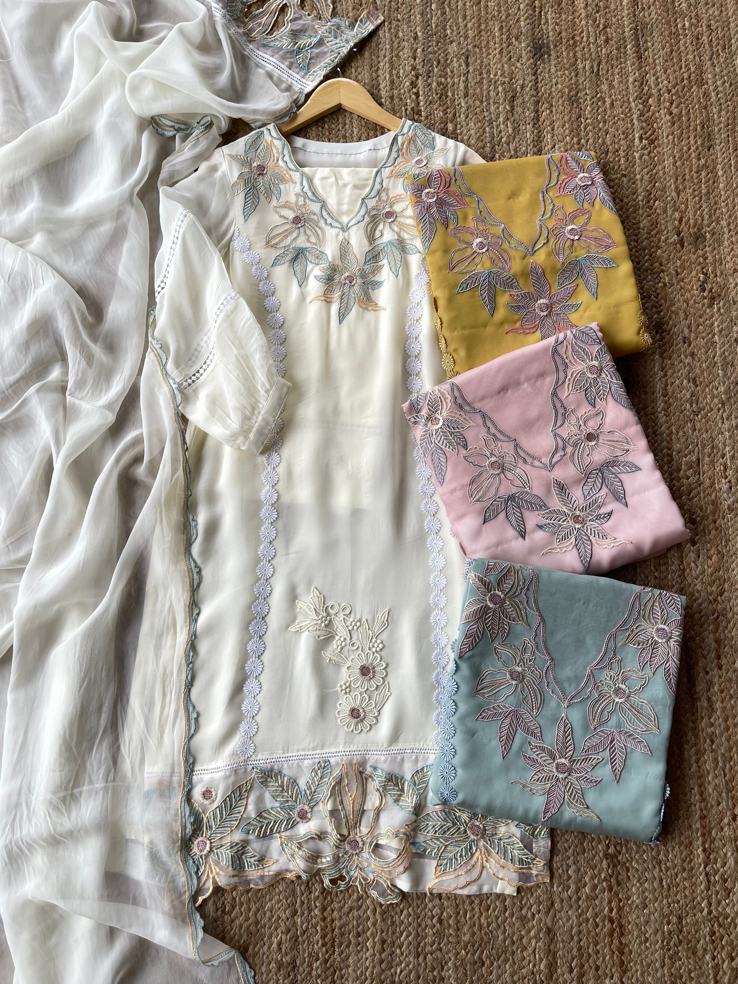 Fabric (Shirt & Dupatta): Georgette Tissue – lightweight with a graceful sheen