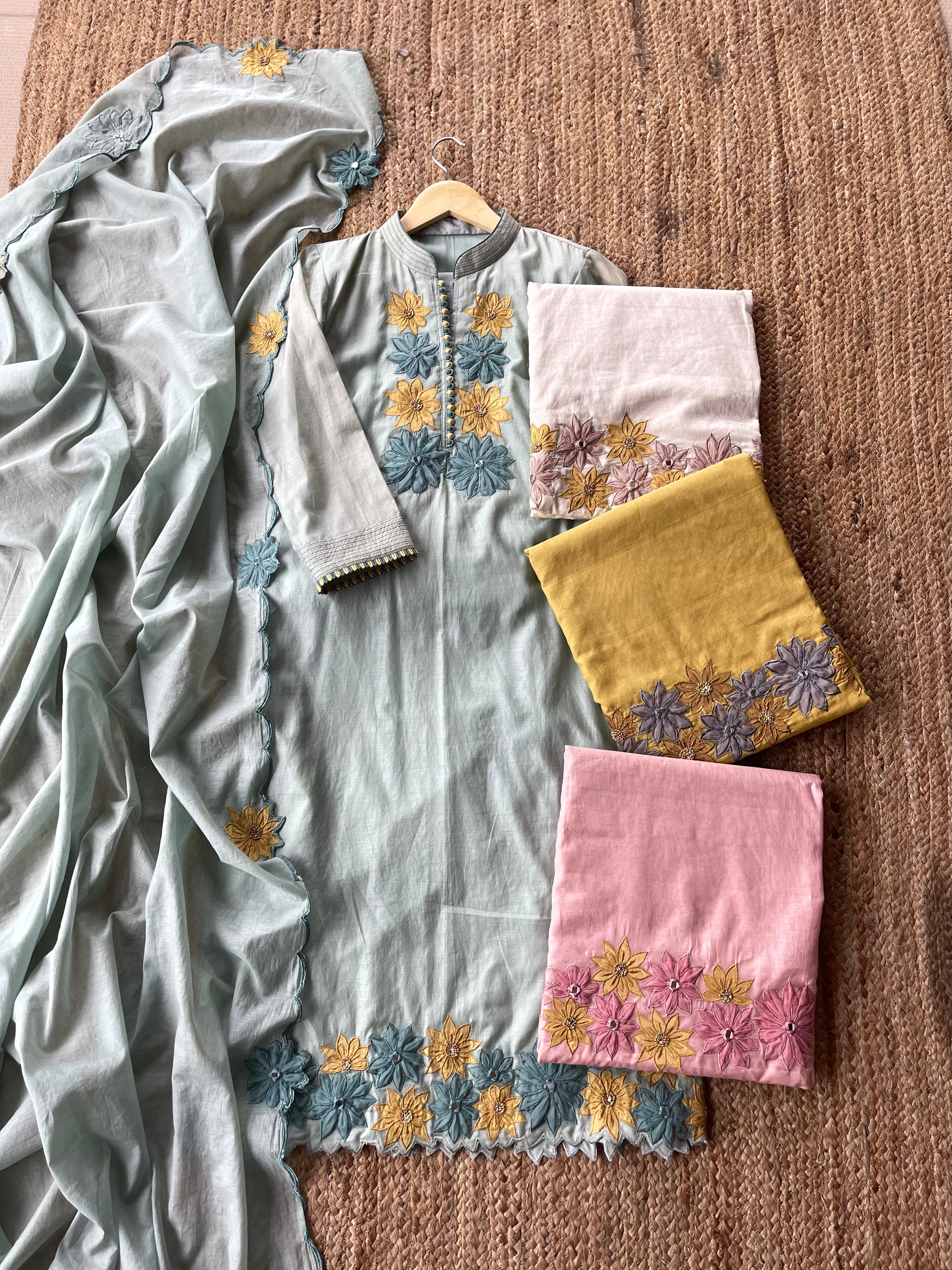 The shirt and dupatta are made from Pure Mul Cotton, a fabric loved for its soft, airy texture and natural flow. Light on the skin yet rich in appearance, Mul Cotton ensures all-day comfort while maintaining a refined and graceful look. The fabric’s breathable quality makes it perfect for warm weather, giving you a breezy and elegant drape.