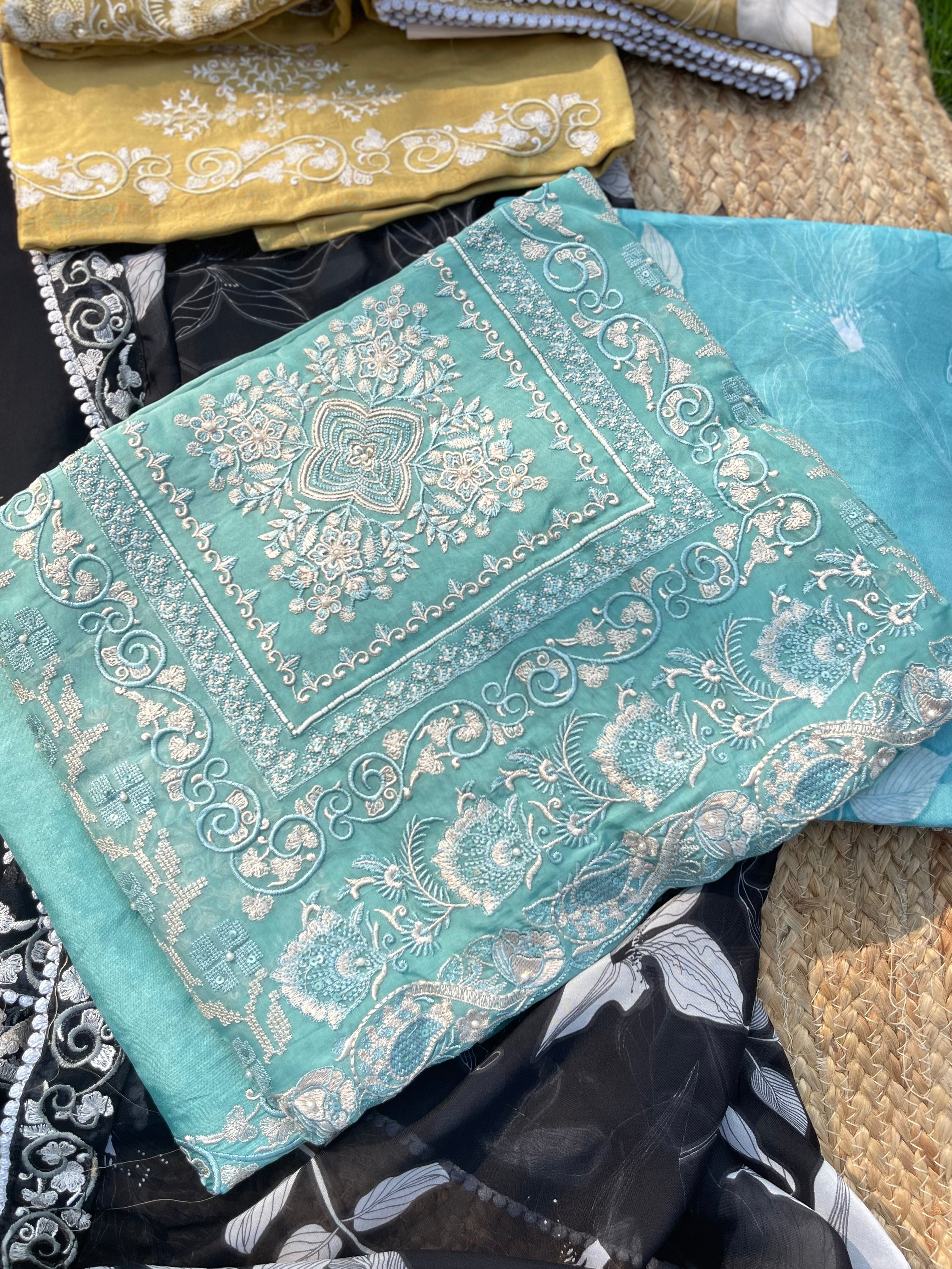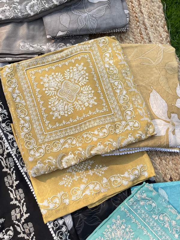 Outfit Type: unstitched 3-Piece Pakistani Ensemble
