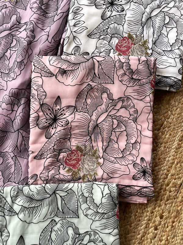 • Outfit Type: unstitched 3-Piece Pakistani Ensemble