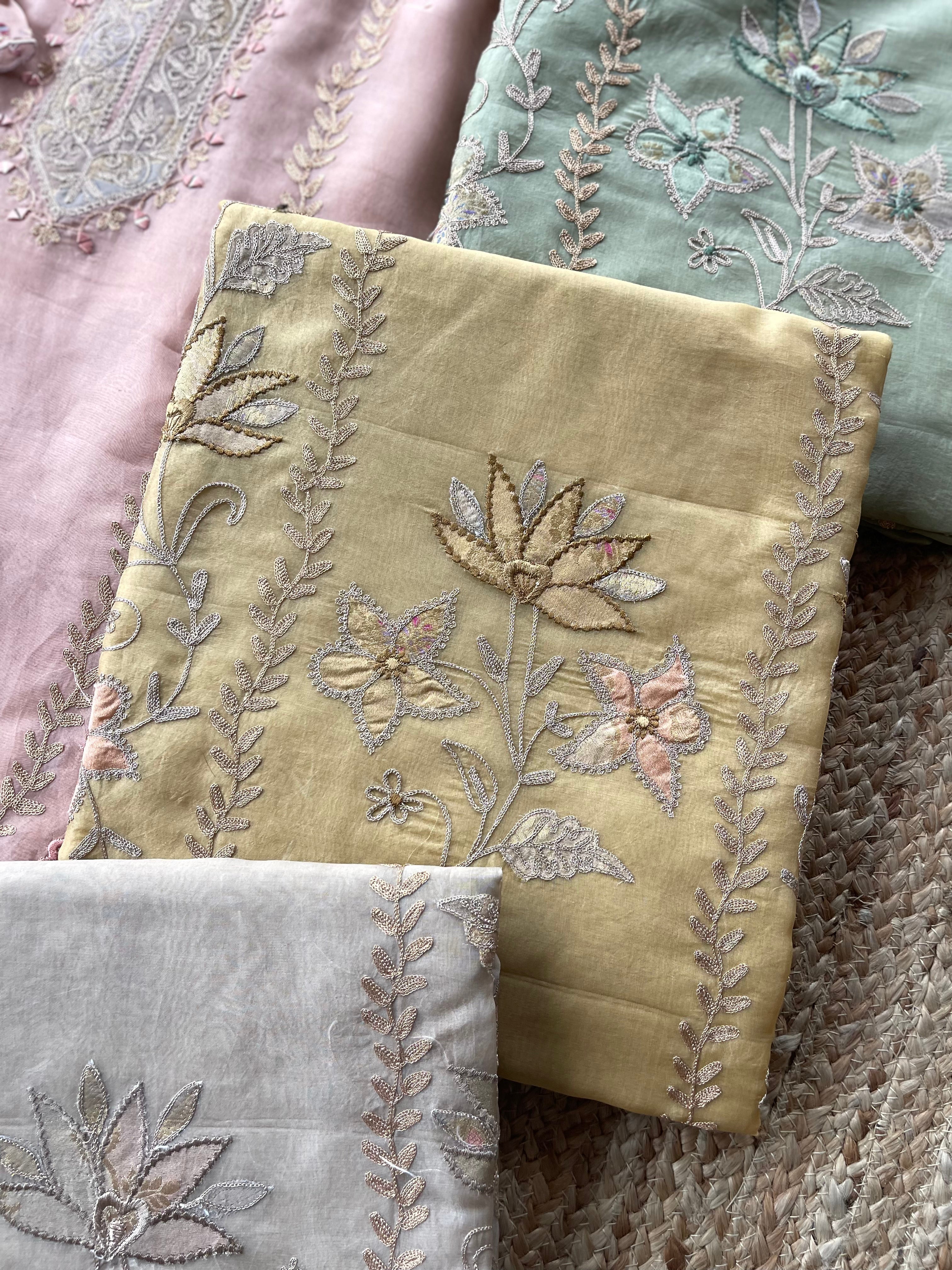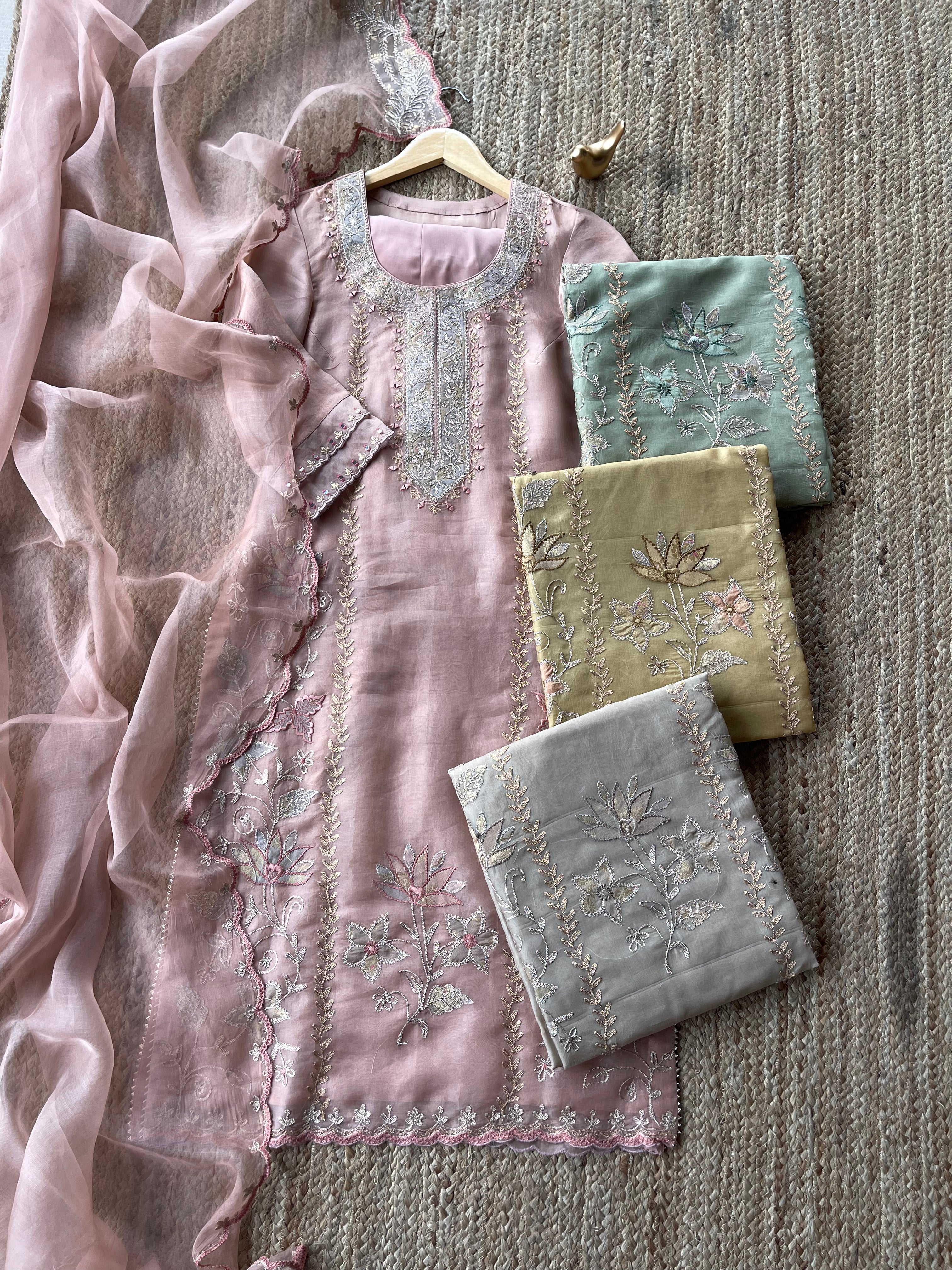 Set Includes: 1 Pure Organza Shirt, 1 Organza Dupatta, 1 Crepe Bottom